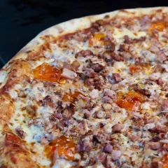 Nossa pizza de bacon com geléia de pimenta chegou com tudo! Que tal uma experiência incrível de sabor ?