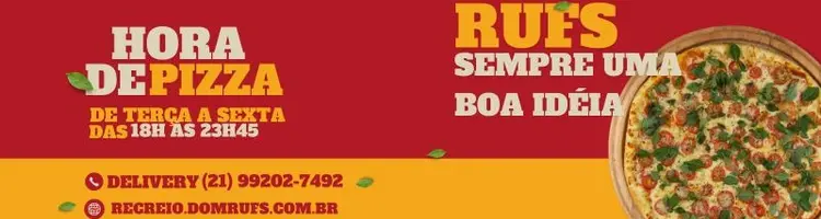 Na compra de duas pizzas salgadas de qualquer sabor, Calabresa, Dom Rufs, Frango com Catupiry, Portuguesa, Bacon, Camarão, de 40cm você ganha uma doce de 30cm grátis, Chocolate ao Leite, Chocolate com Morango, Cocada, Churros e muito mais.